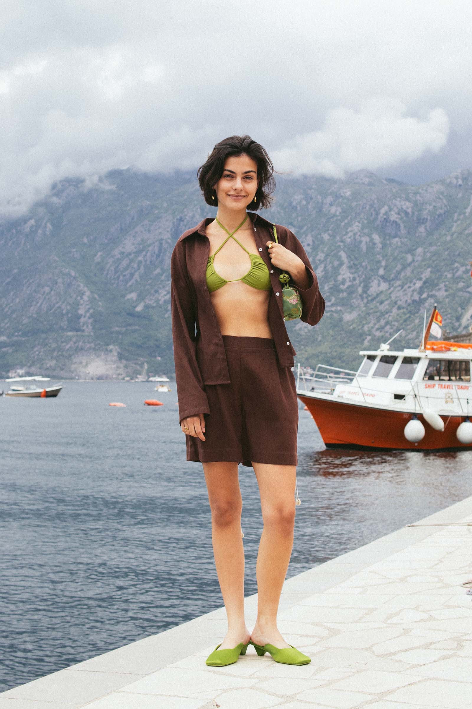 Удлинённые свободные шорты из плотного льна с вискозой. Ткань держит форму, при этом остаётся лёгкой и комфортной в жару и в межсезонье. Мягкая эластичная вставка на поясе обеспечивает естественную посадку, шлевки на поясе позволяют добавить ремень. Два боковых кармана вписаны аккуратно и не утяжеляют силуэт.