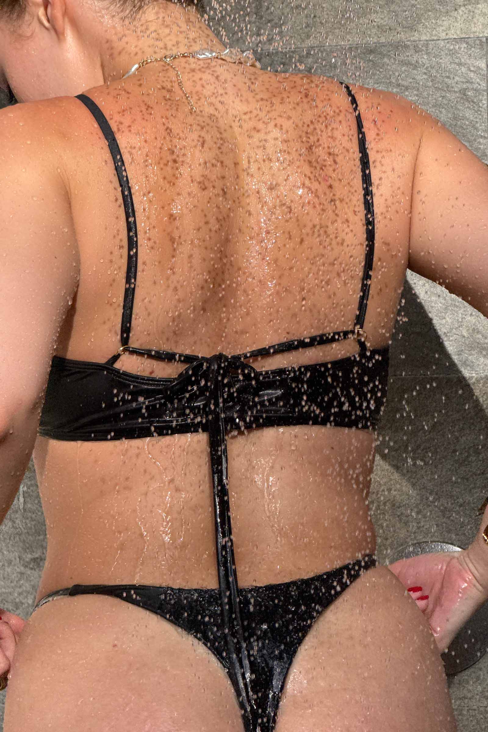 Базовая модель бандо с закрытой спинкой без застежек, с декоративными кольцами и длинными завязками сзади. Горизонтальный шов по передней части лифа акцентирует зону декольте, визуально добавляя объем, а продуманный уникальный крой подходит для поддержки большой груди.