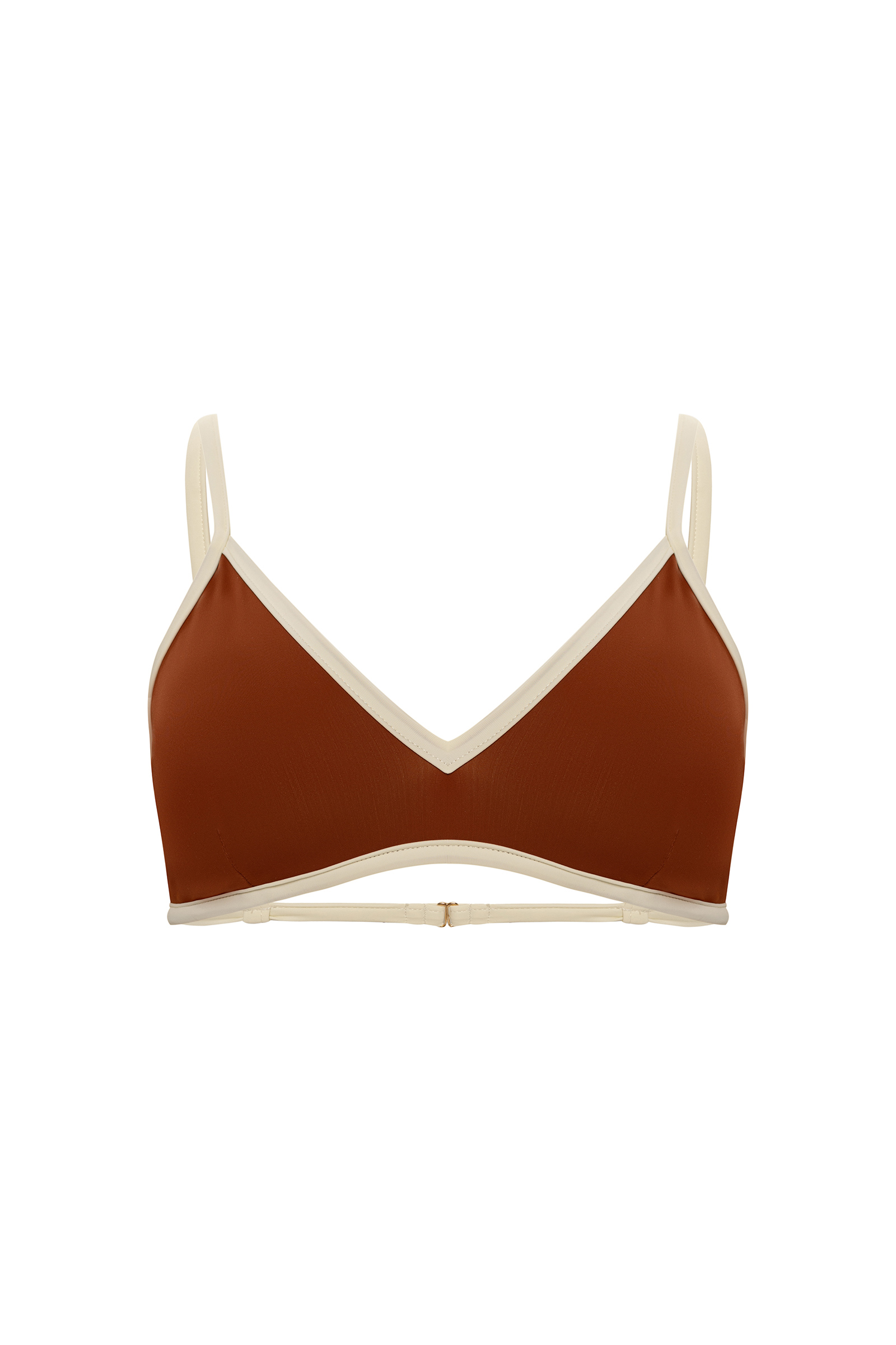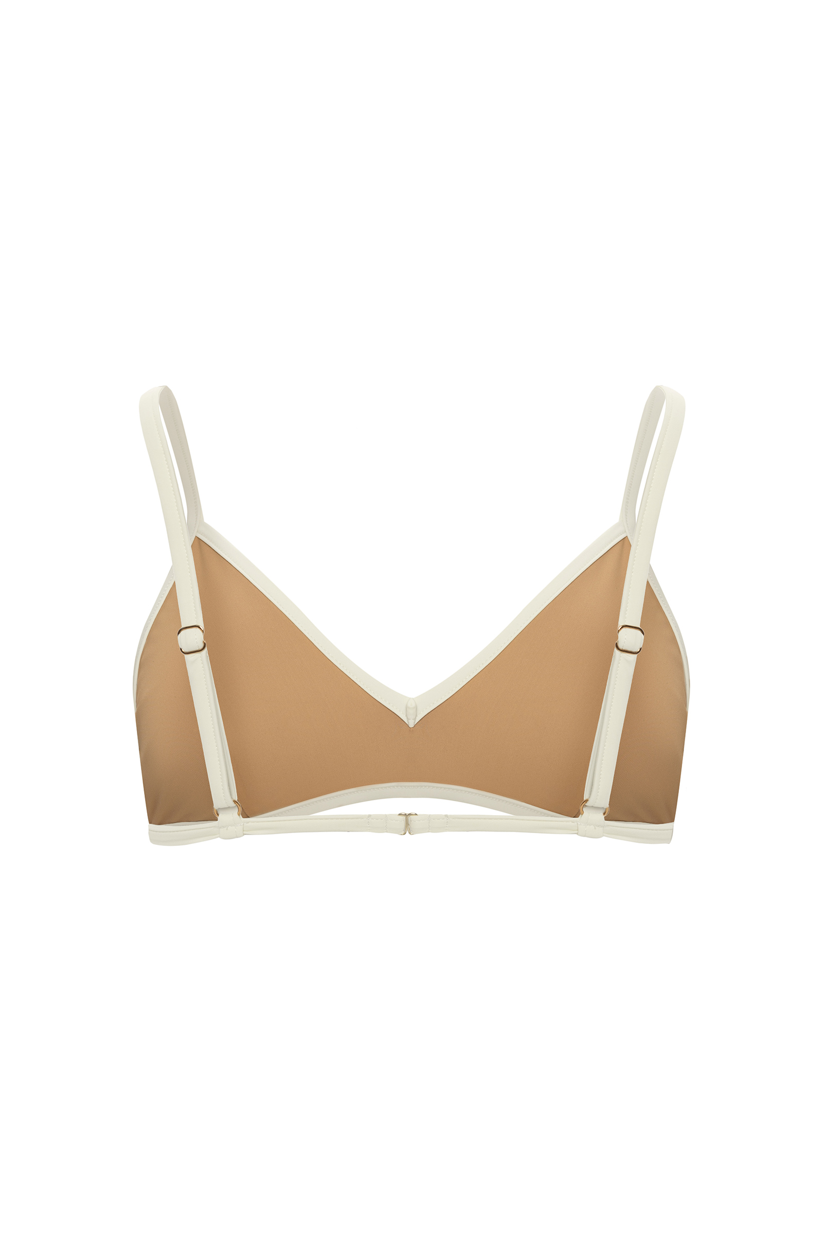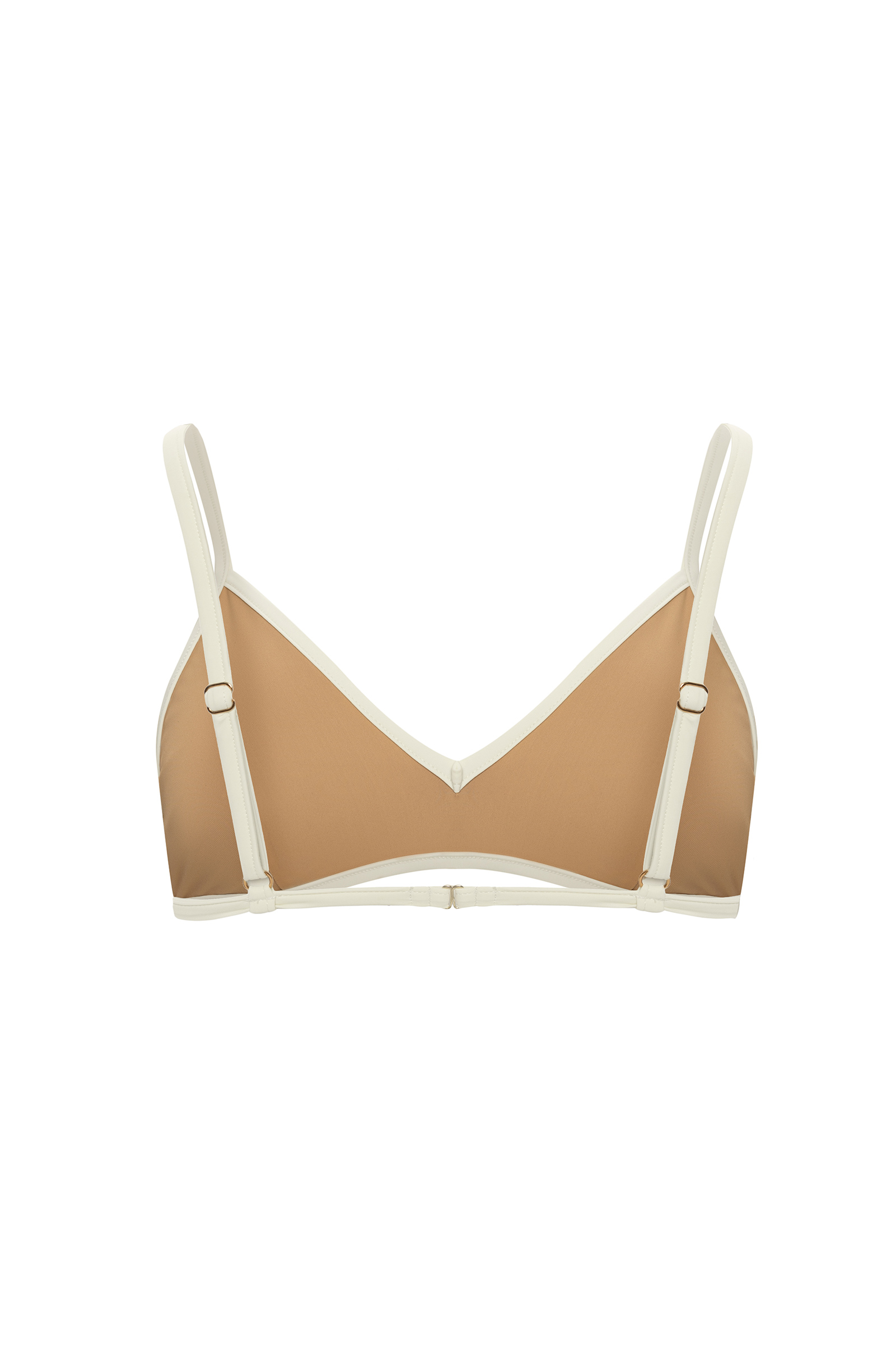 Топ с треугольными чашками, бретели на регуляторах. Сзади топ застегивается за застежку-крючок. В чашечках предусмотрены отверстия для поролоновых вкладышей. Сочетайте с плавками от моделей Агла, Ида и Пенелопа