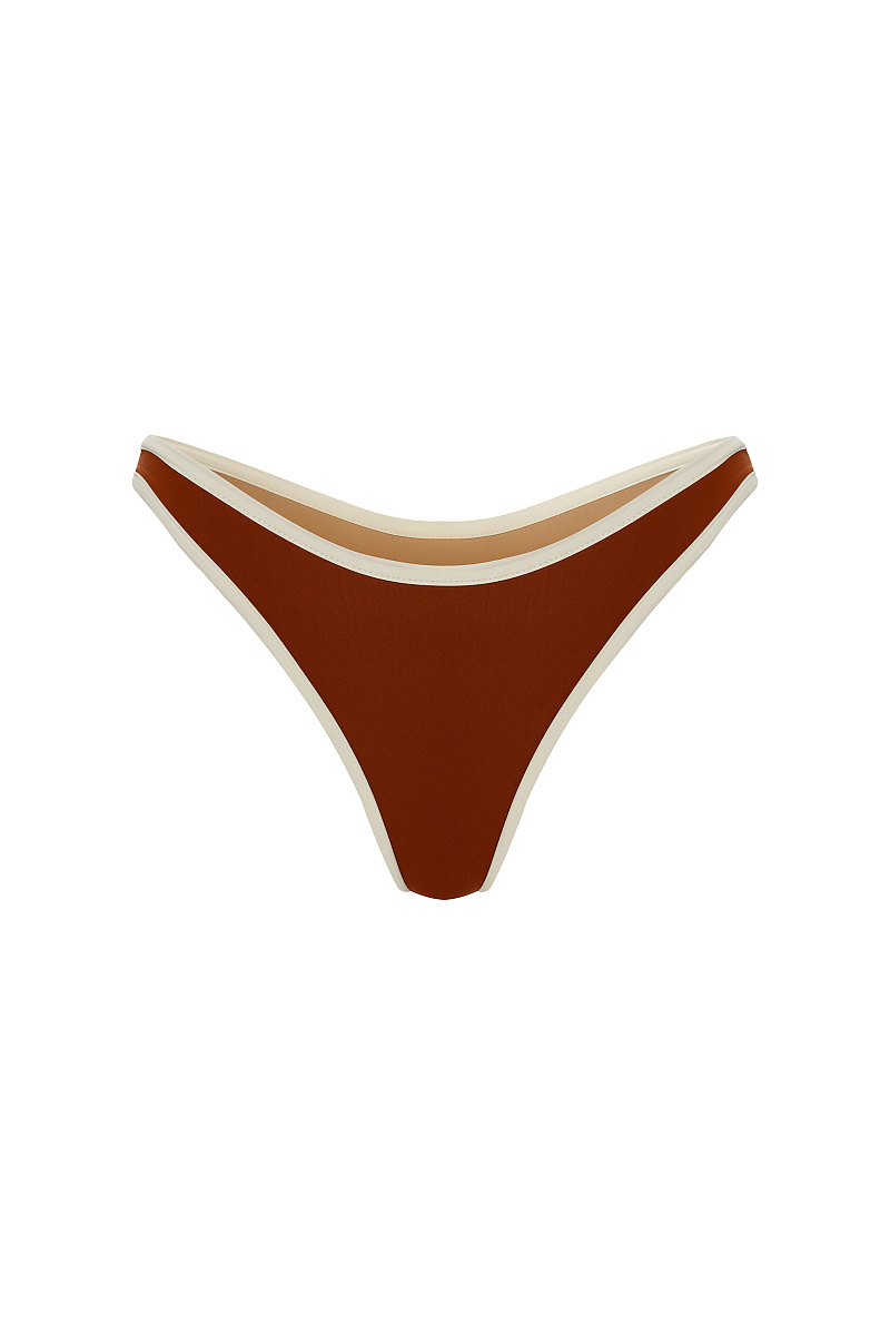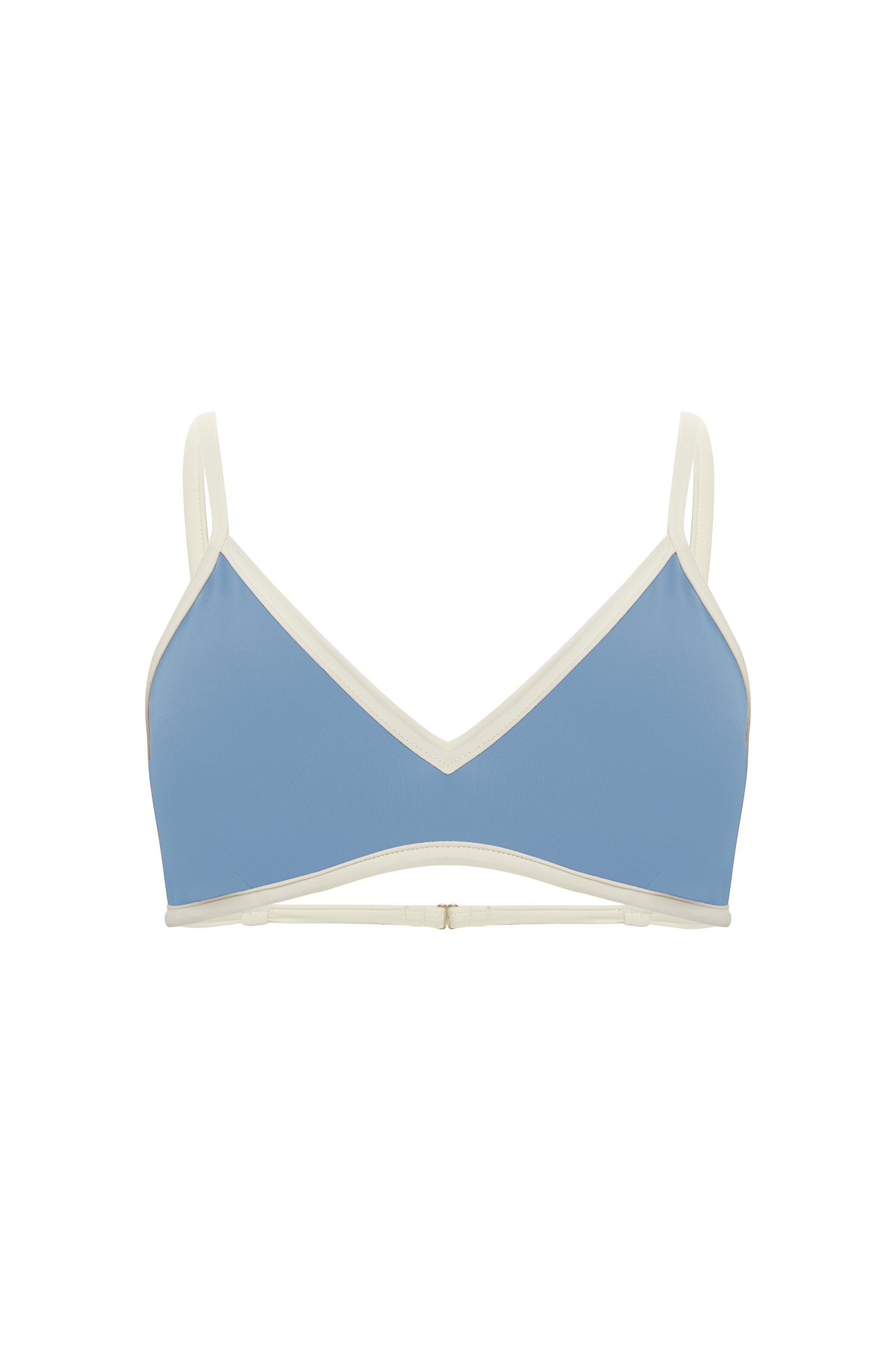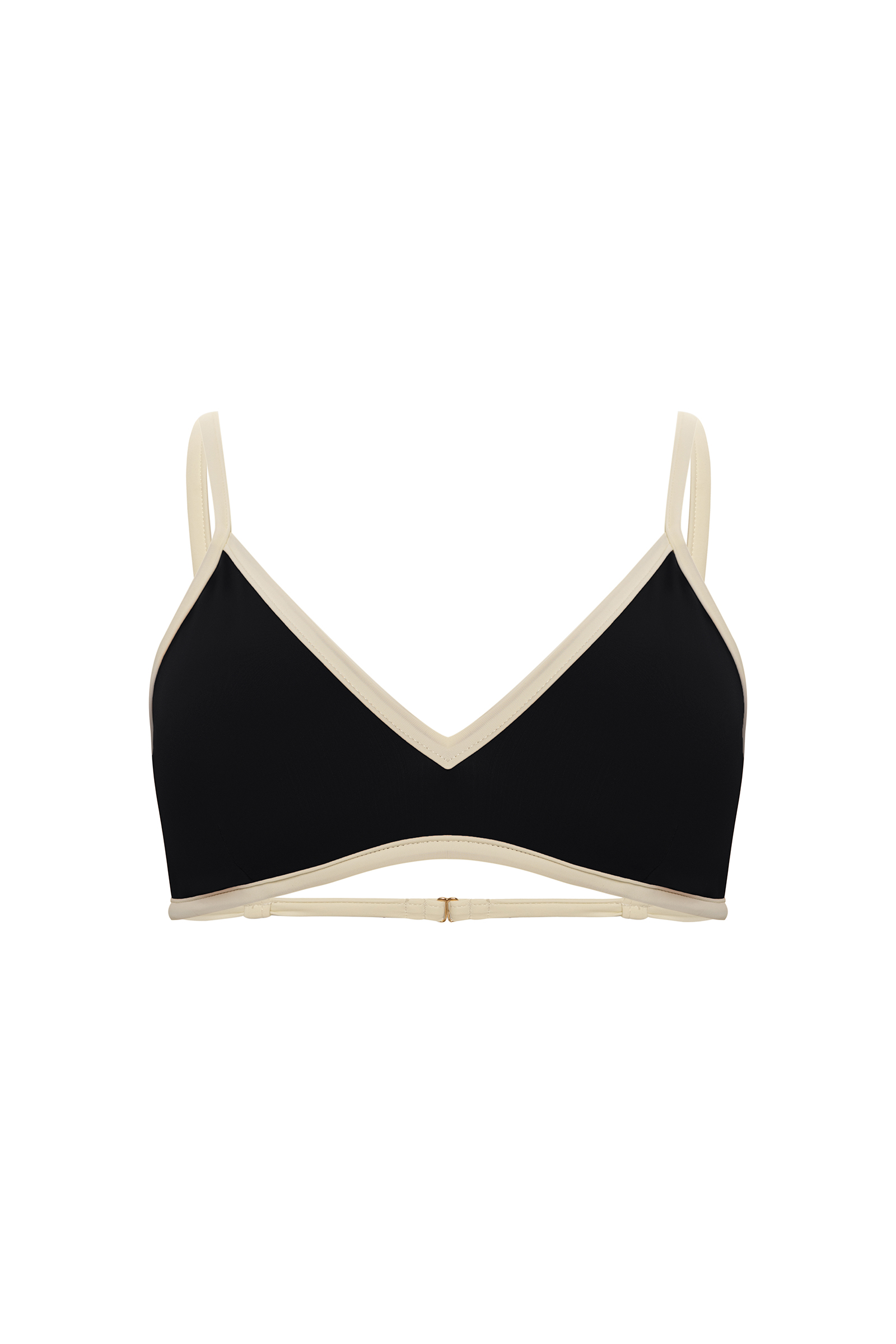 Топ с треугольными чашками, бретели на регуляторах. Сзади топ застегивается за застежку-крючок. В чашечках предусмотрены отверстия для поролоновых вкладышей. Сочетайте с плавками от моделей Агла, Ида и Пенелопа